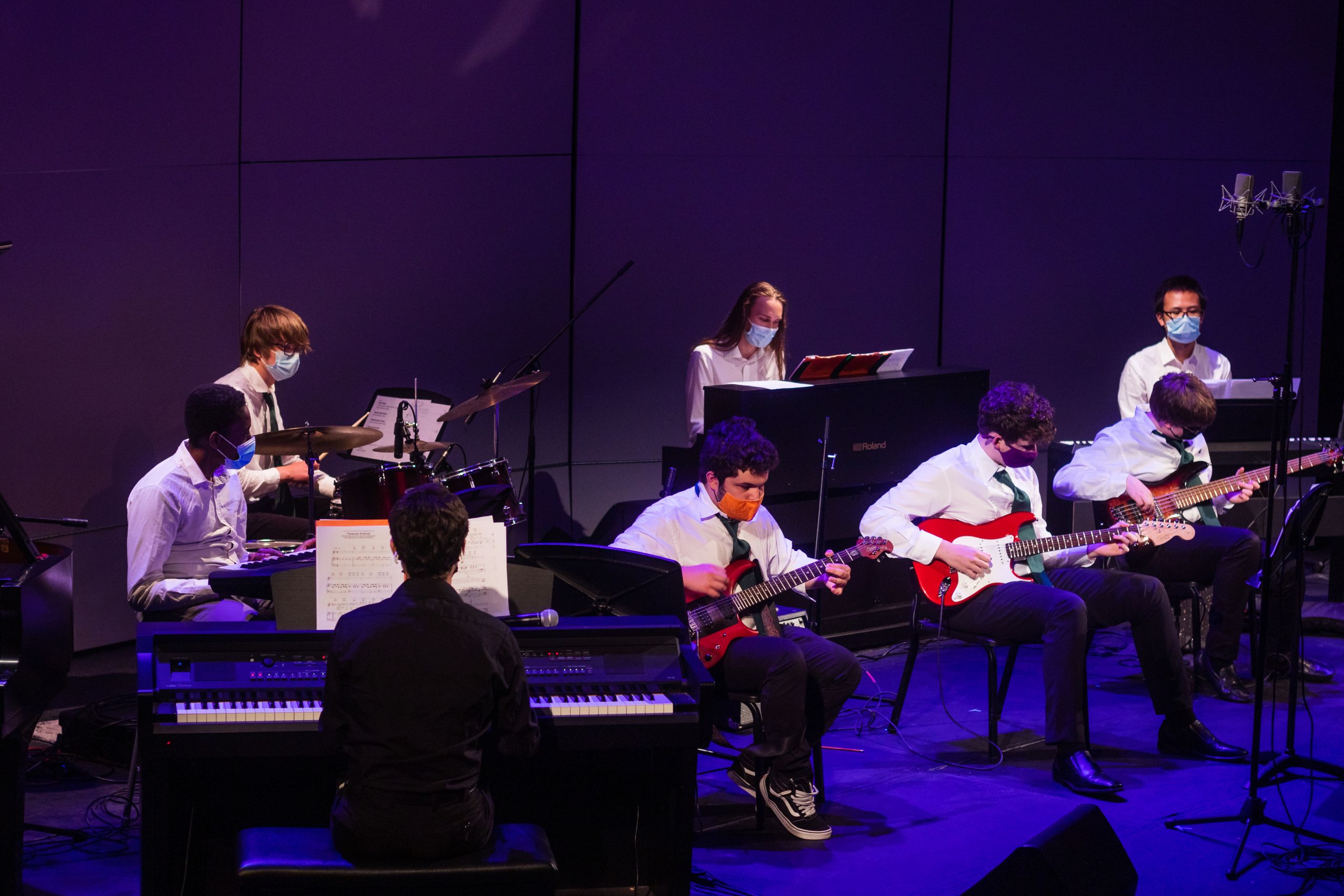 The Band performed live in three concerts during the school year. Unable to hold a full audience due to social distancing guidelines, the performances were live-streamed online and recorded with professional video and audio courtesy of audio engineer Kyle Olmstead, lighting designer Laura Hildebrand, and a videography team led by Sam Powell.