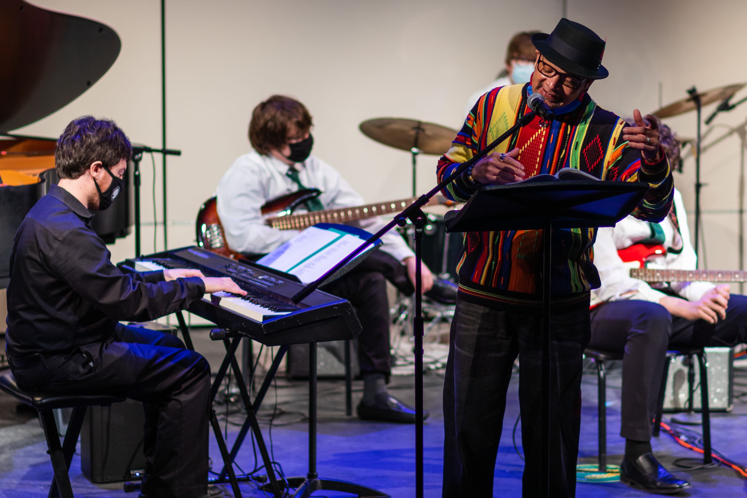 For its next concert, the Band invited two of the School's musicians in residence to perform in March. Pianist Jonathan Fagan performed a set of jazz pieces on piano, accompanied by poetry recited by Terry E. Carter.