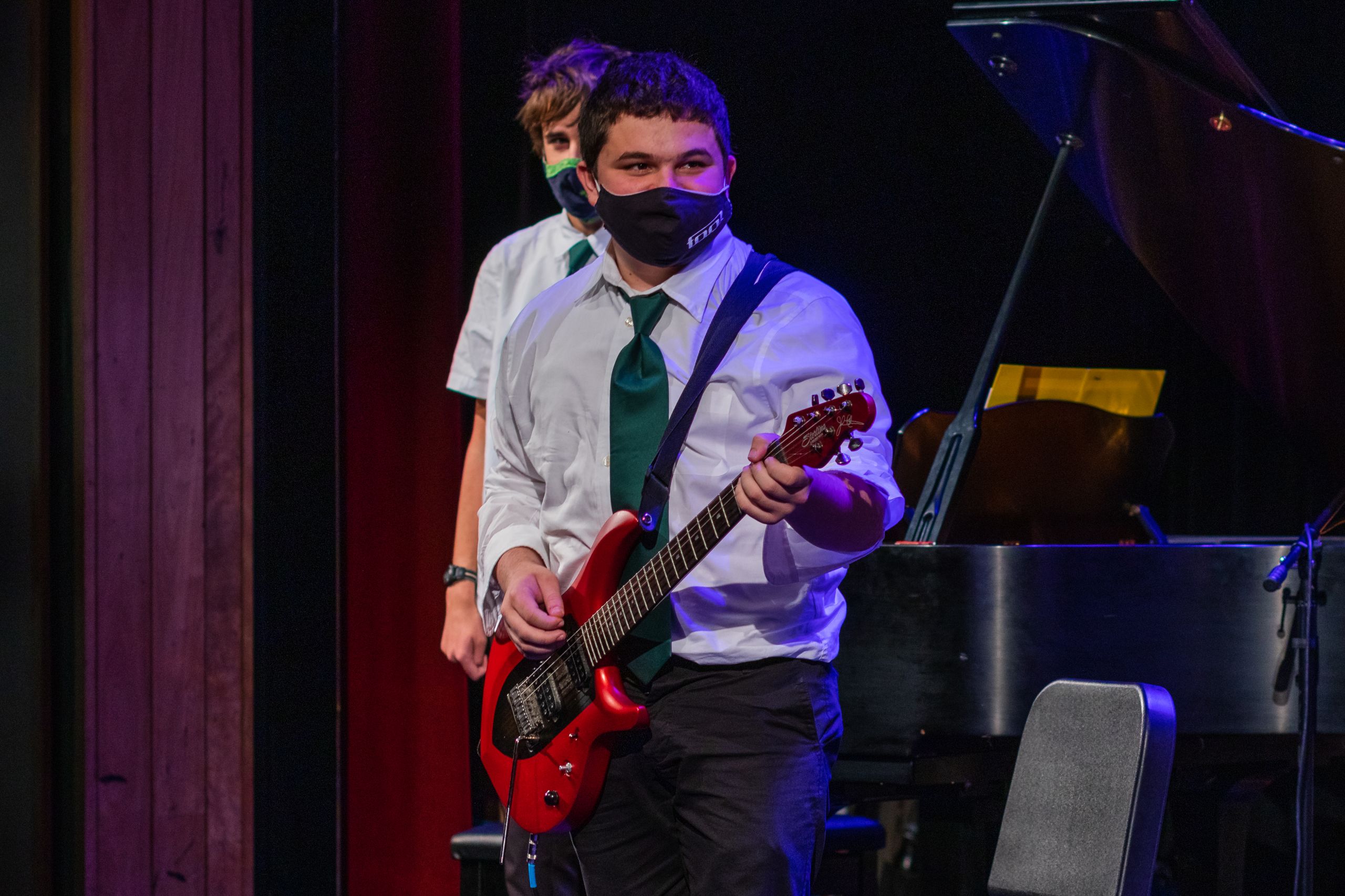 Without woodwind and brass instruments in the Band, the group of nine underclassmen put their heads together to pull off three concerts in an extraordinary year. Flutists and trumpeters became pianists, guitarists doubled as drummers, and the students collaborated to do what they enjoy best: making music.