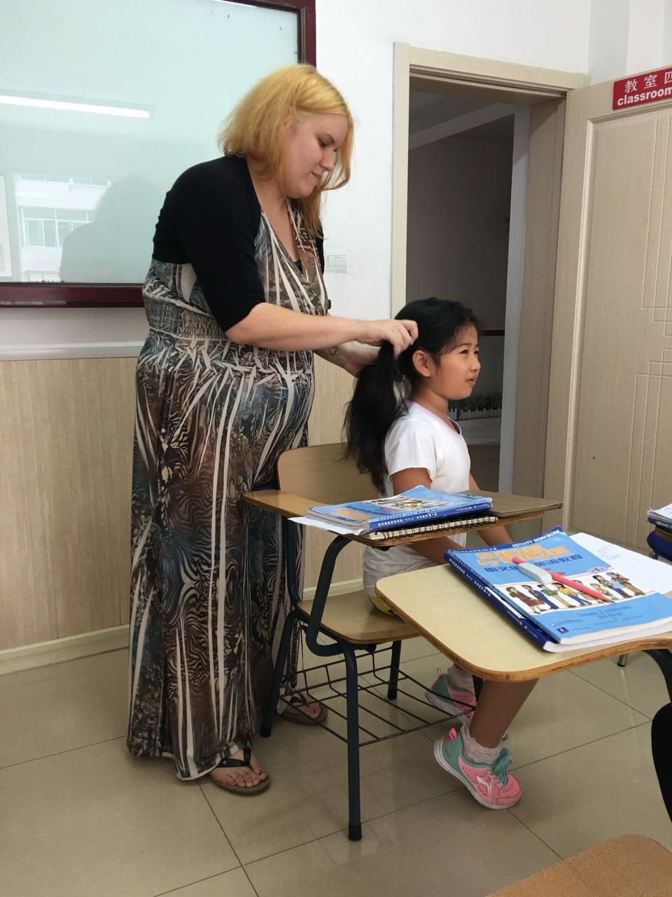 Mary Wang '26 and her first American English teacher, Brandy. Photo Courtesy of Mary Wang.