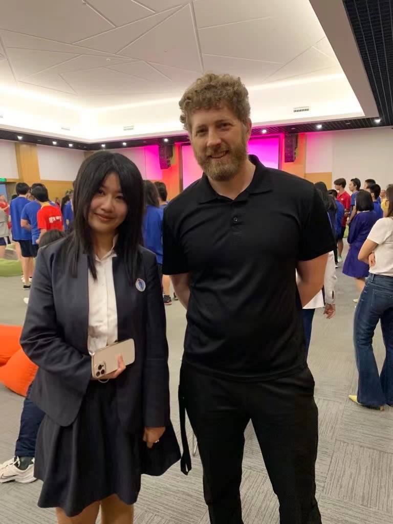 Mary Wang '26 at Keystone Academy with her 8th grade adviser, Mr. Gibbs, shortly before she came to Brimmer and May.