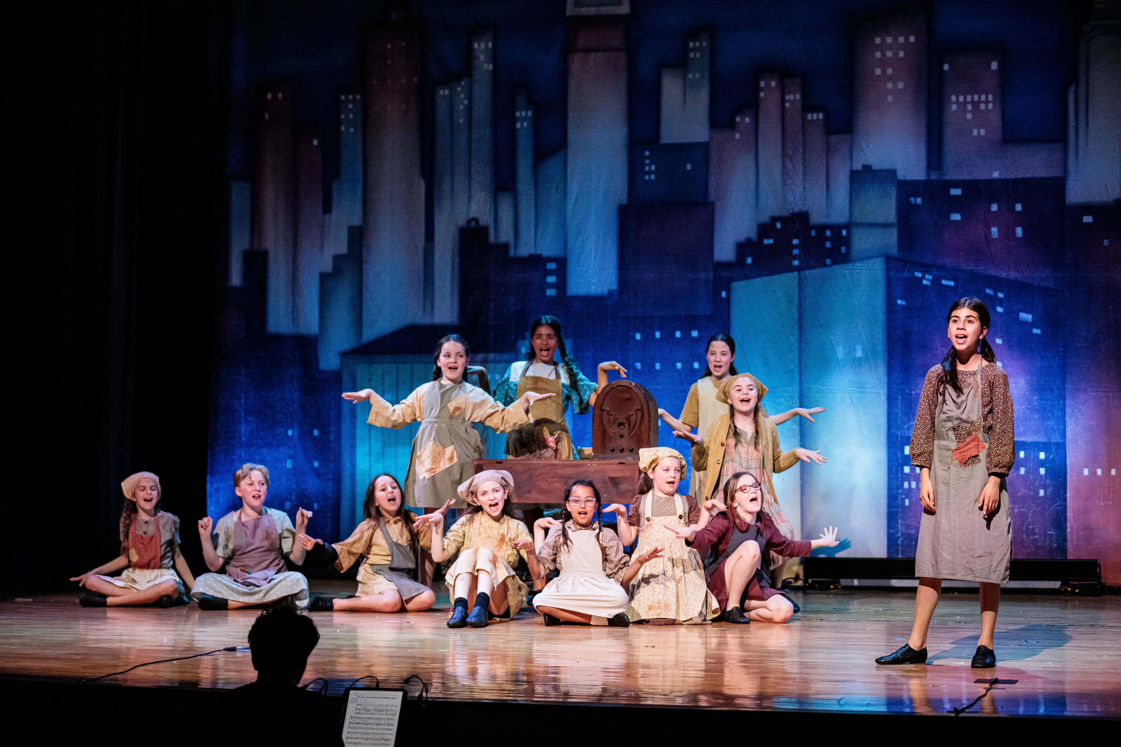 NEMPAC's Spring Musical Troupe "Annie Jr." performs (Asst. Directed by Mary Wang '26). Photo courtesy of Benjamin Rose Photography.