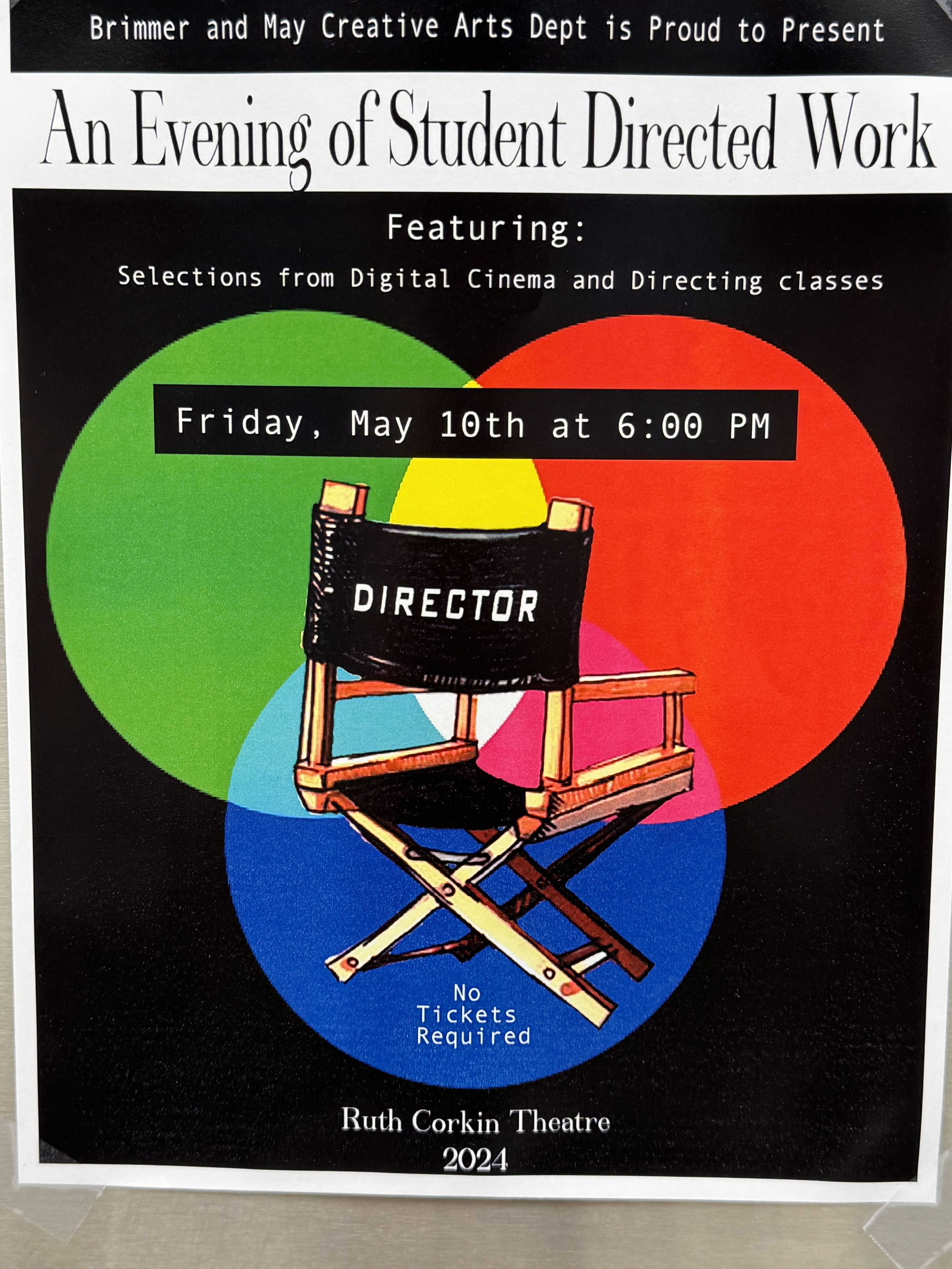 Poster for the 2024 Student Directed Play, featuring Poof! directed by Mary Wang '26.
