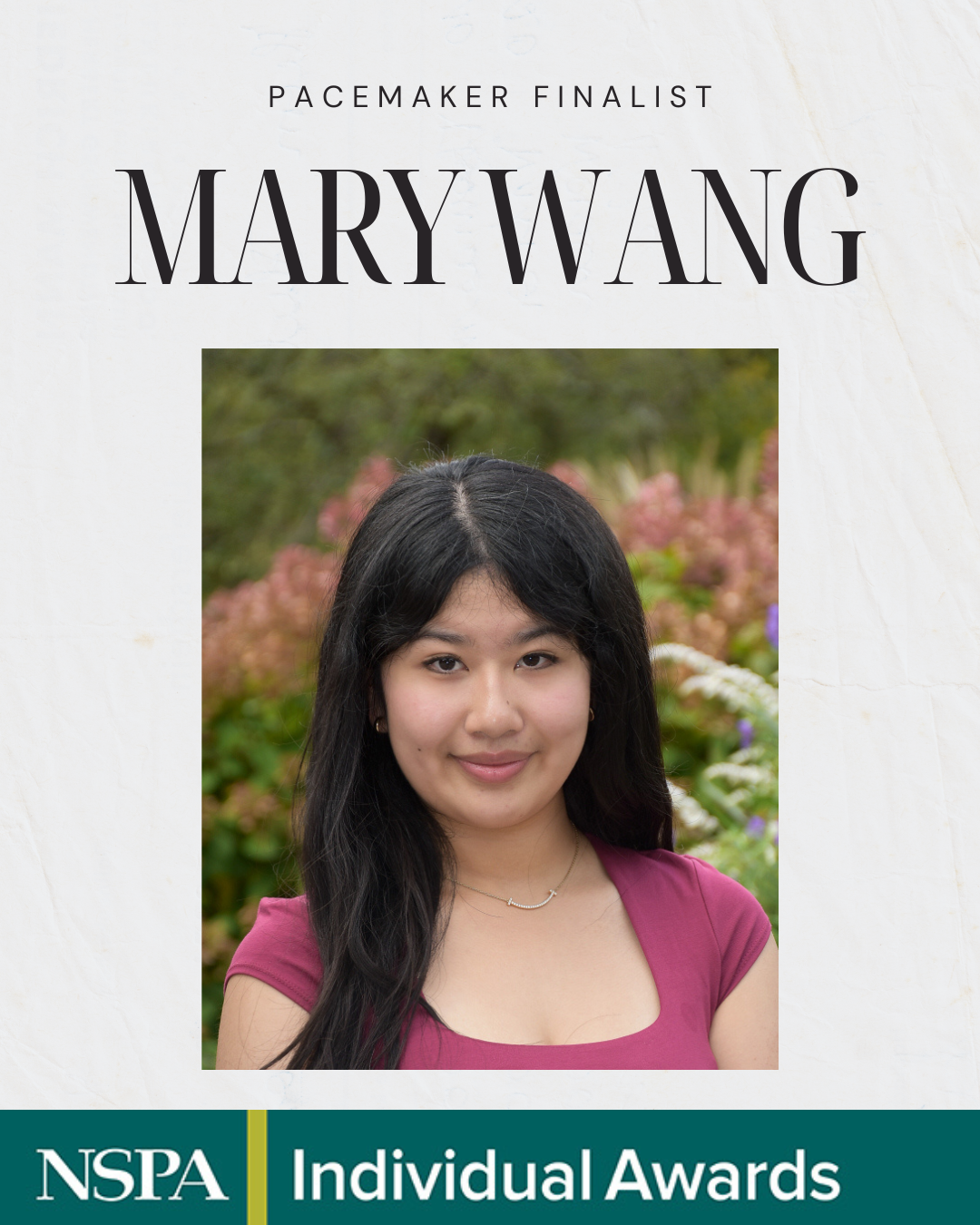 Mary Wang ’26 earns two NSPA Individual Pacemaker finalist spots for her multimedia reporting, landing on the short list for what is widely considered the Pulitzer Prizes of high school journalism.