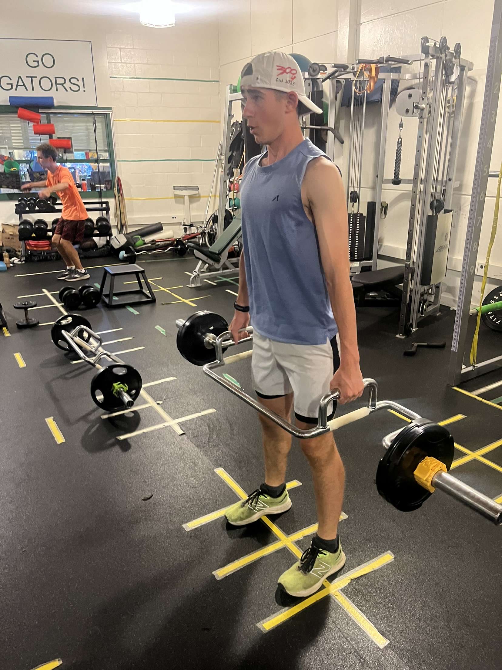 Brooks Neufeld '26 exercising in the weight room.