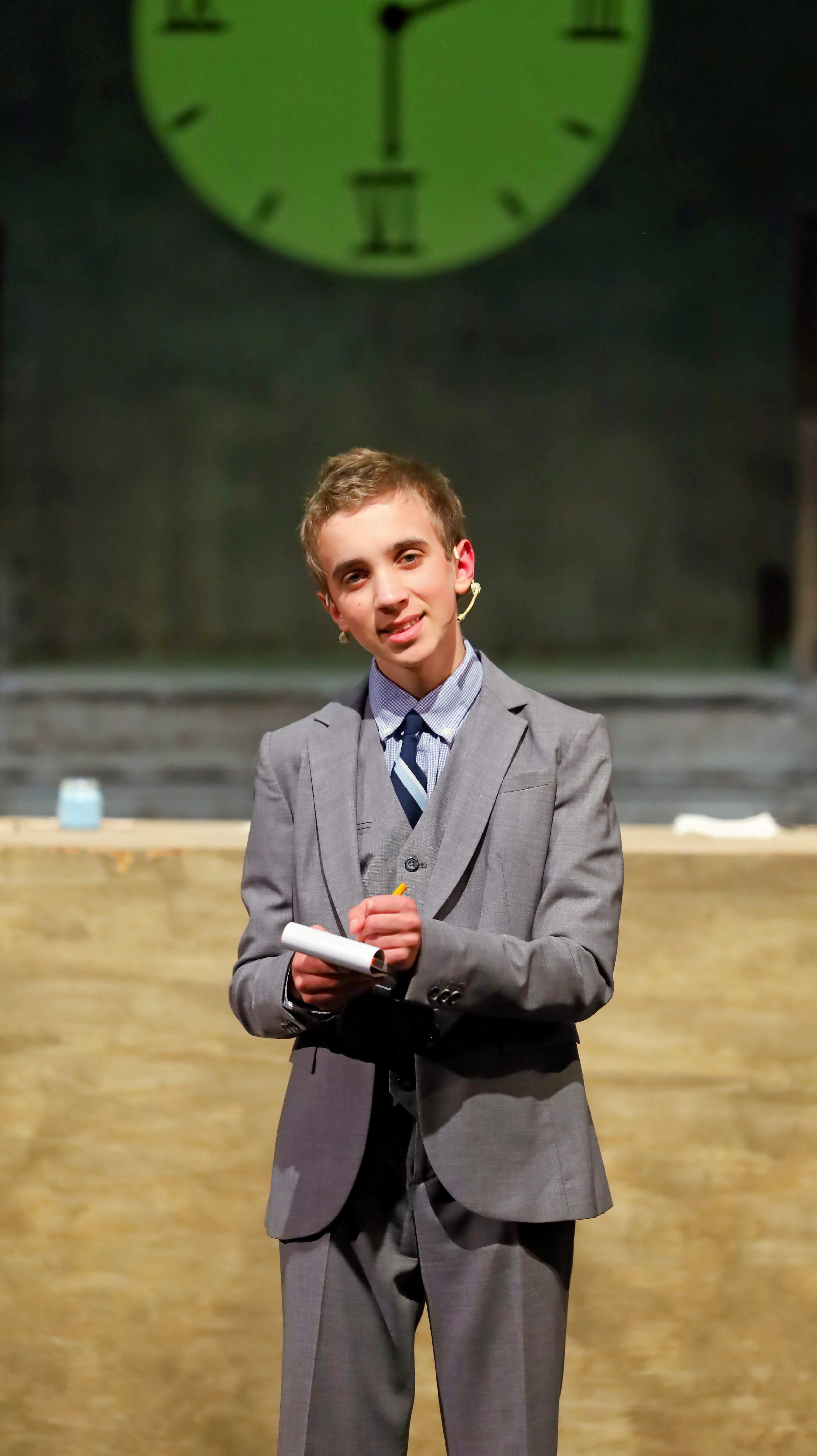 Joshua Sommers '29 poses as Reporter Jack Youngwood.