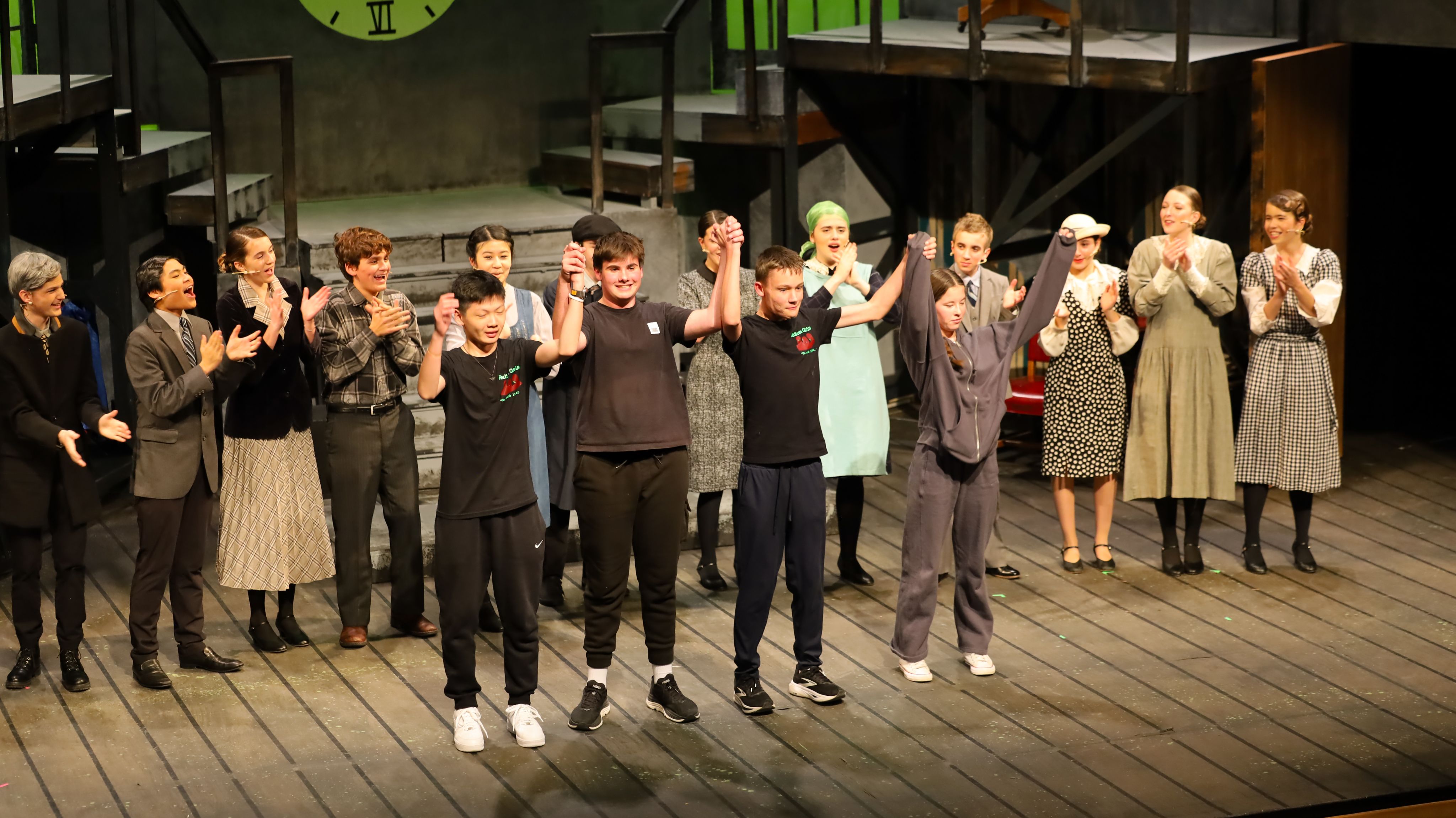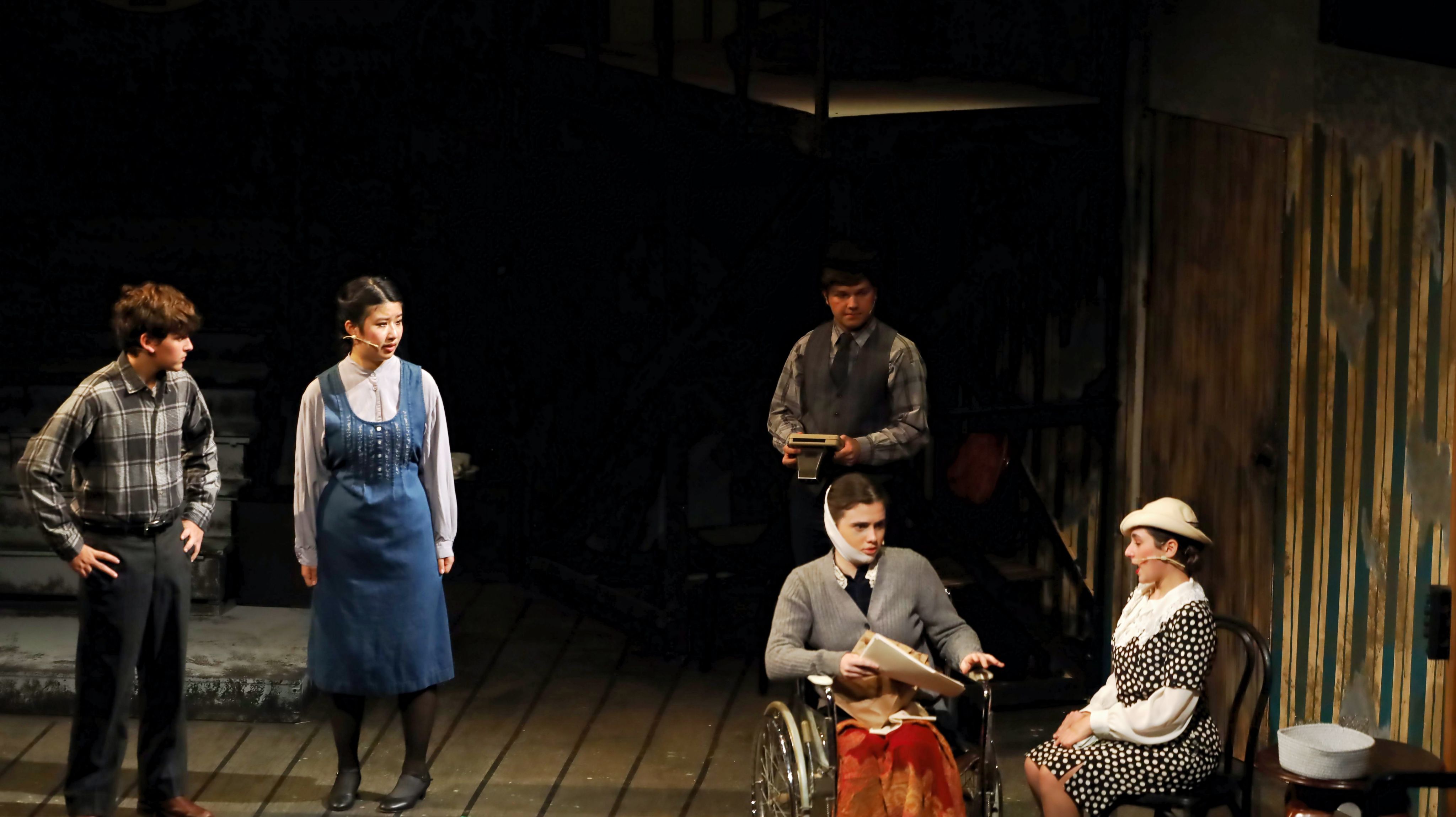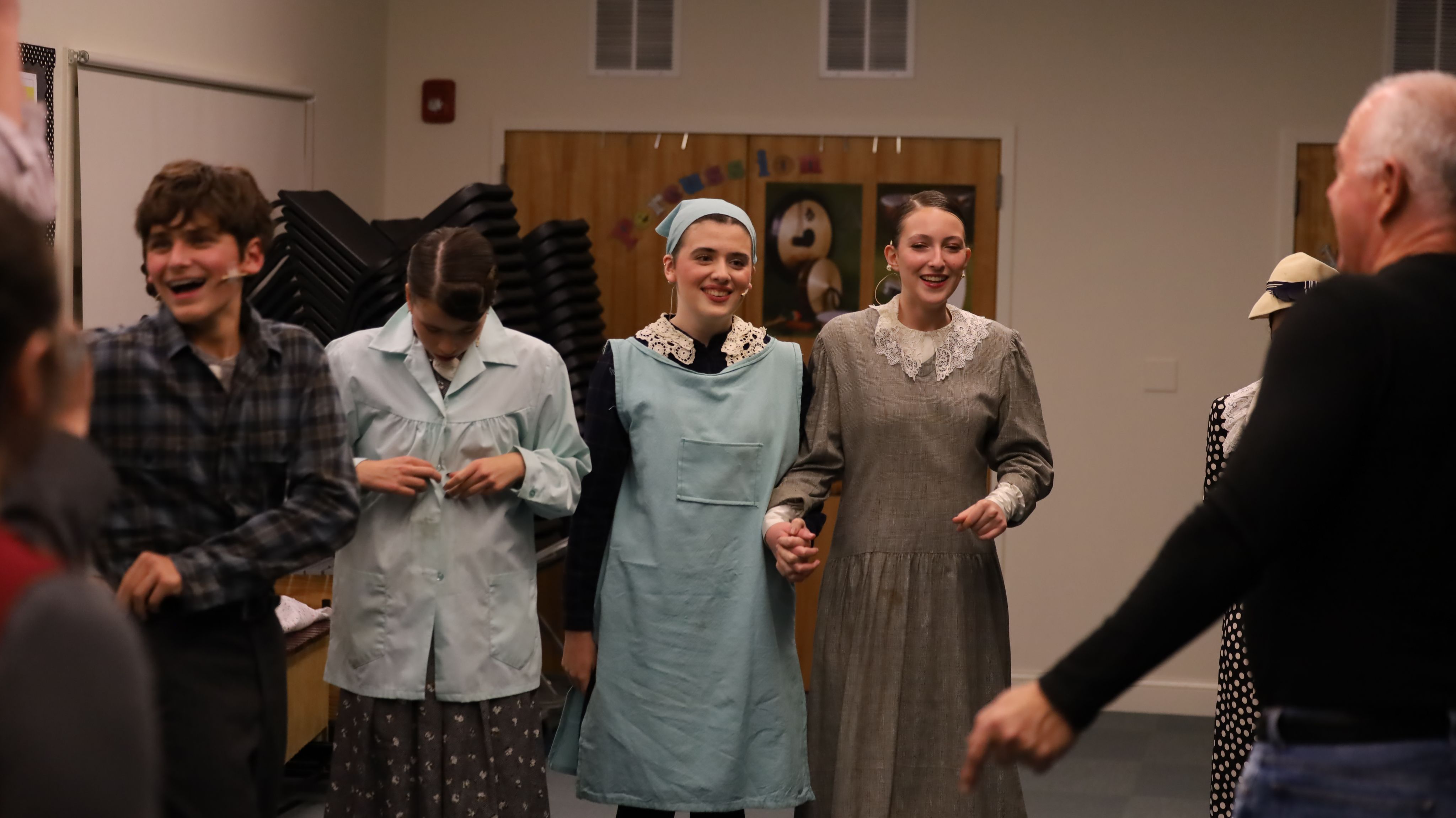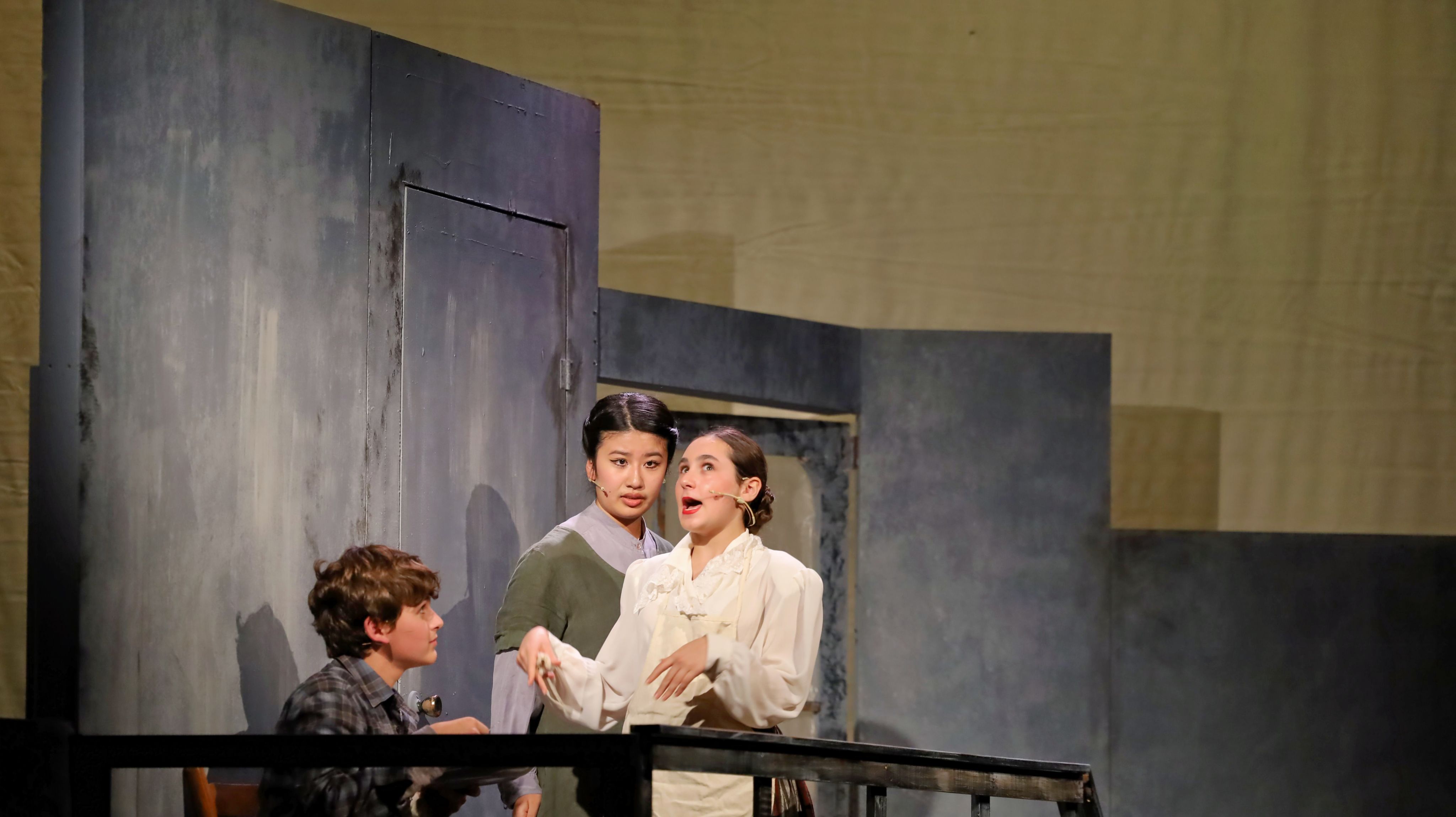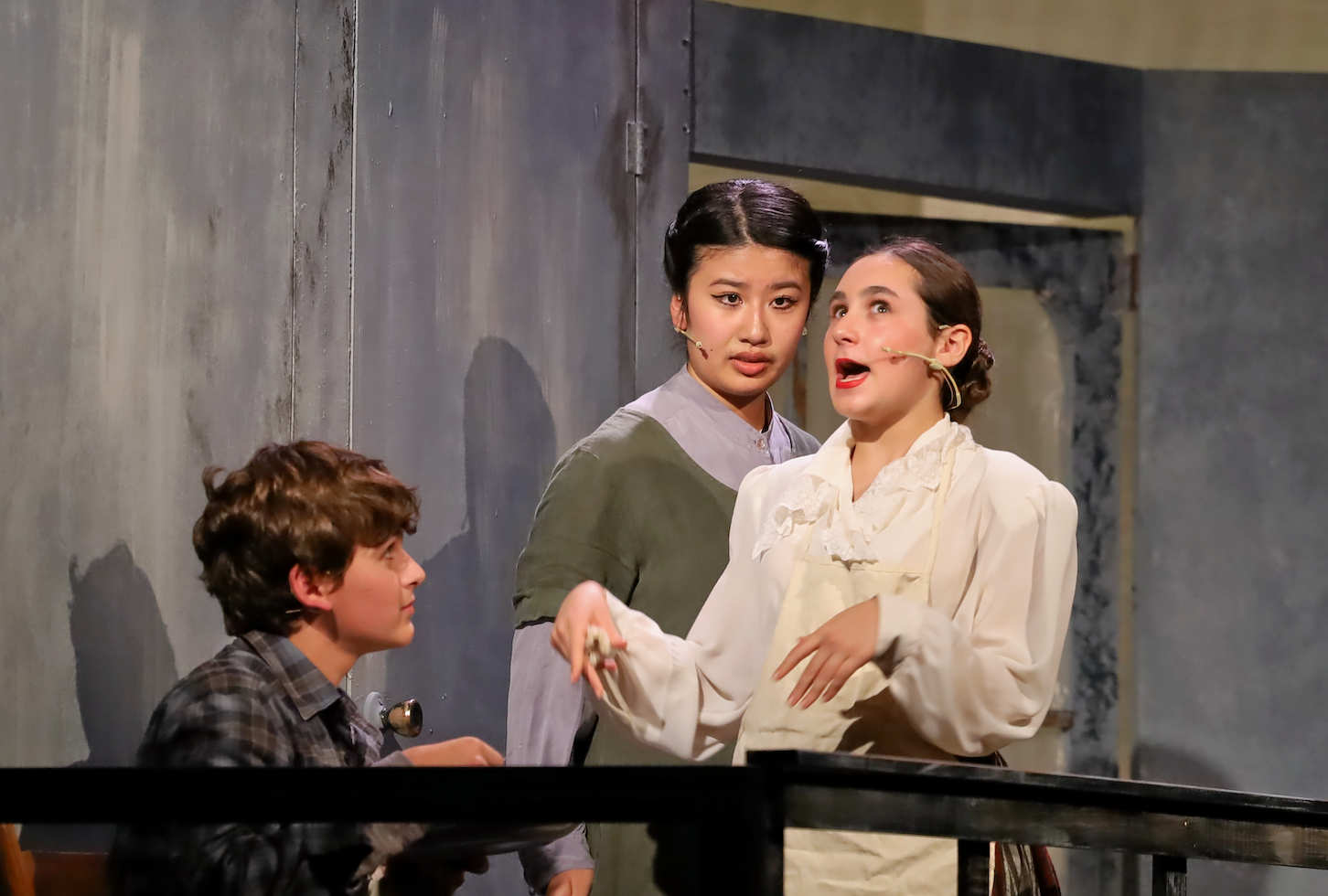 Cole Esrick '29 as Tom, Mary Wang '26 as Grace, and Izzy Miller '29 as Mrs. Fryer.