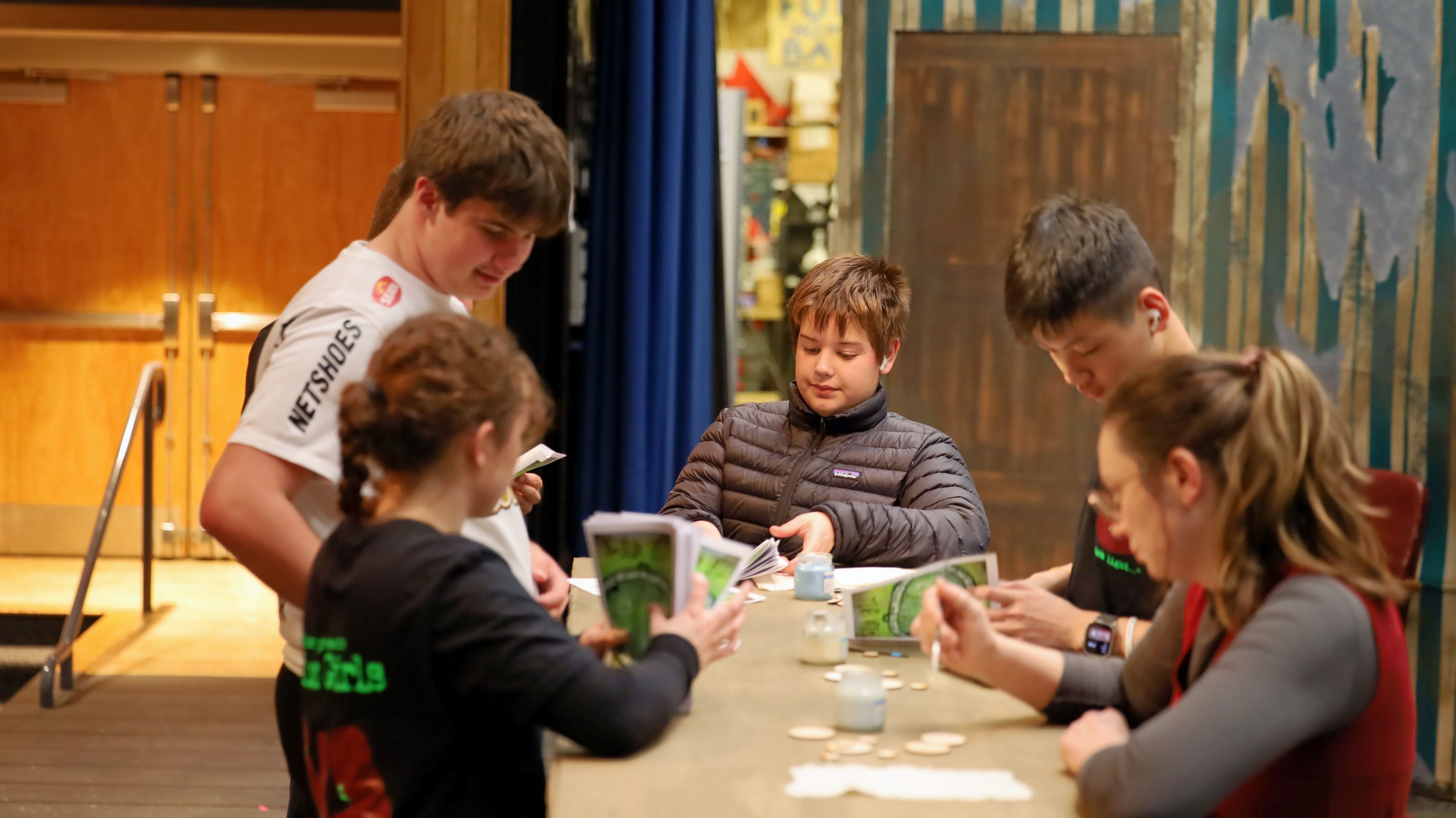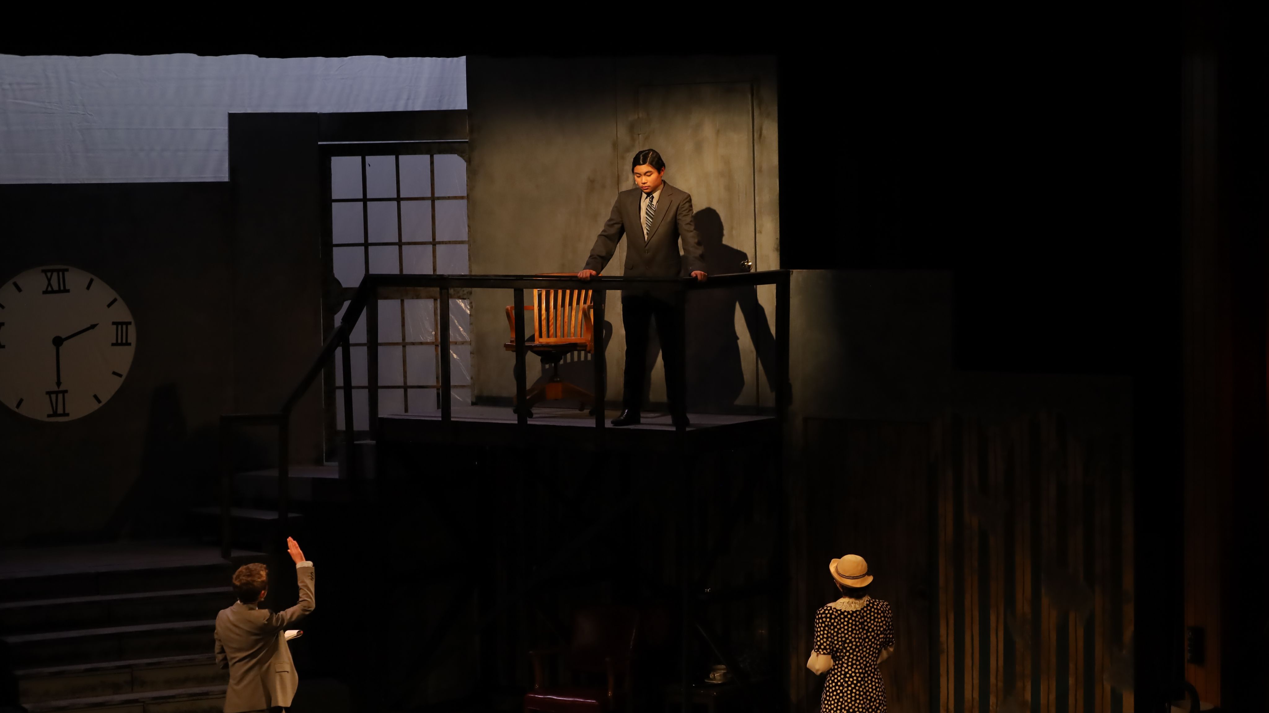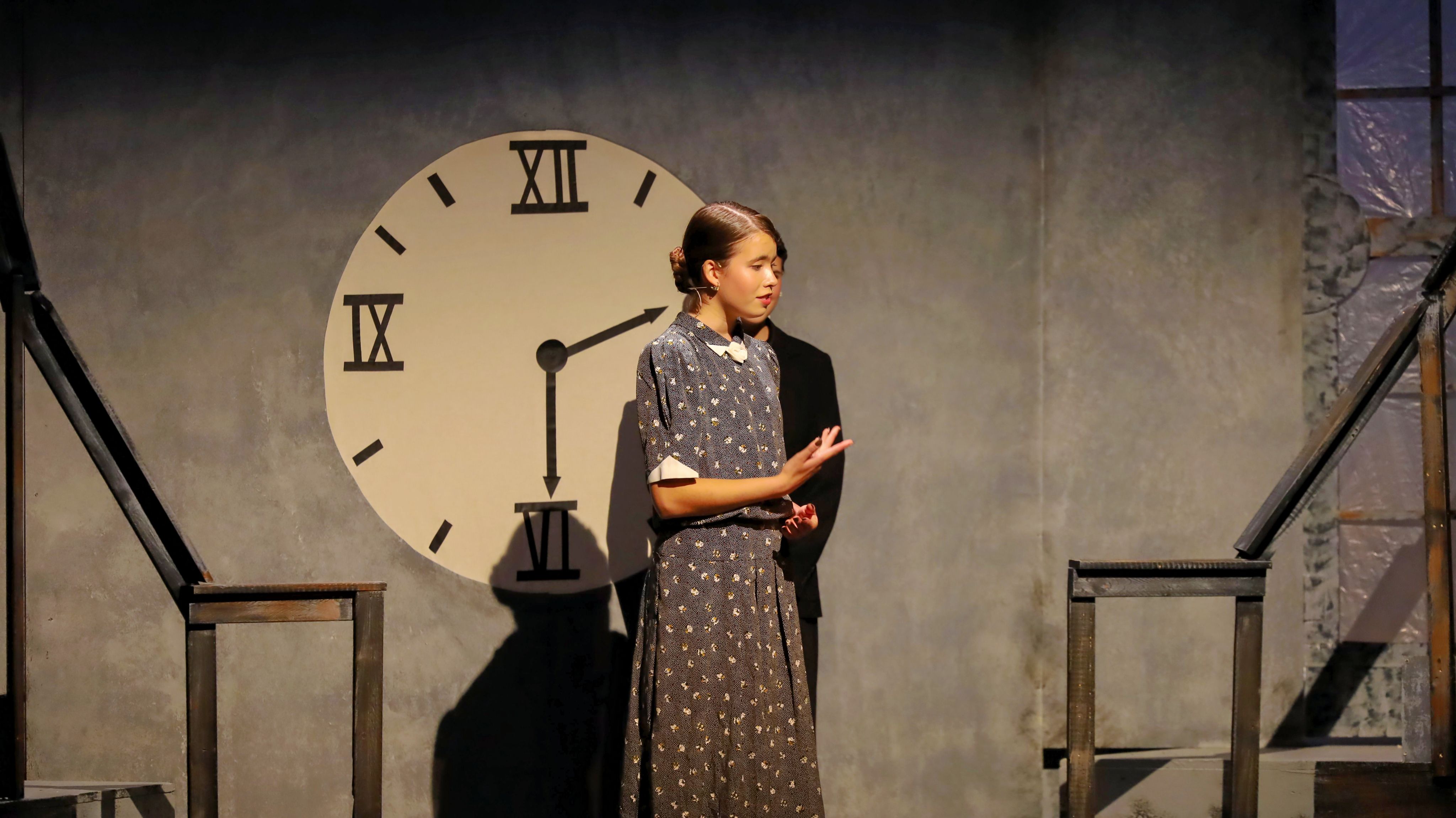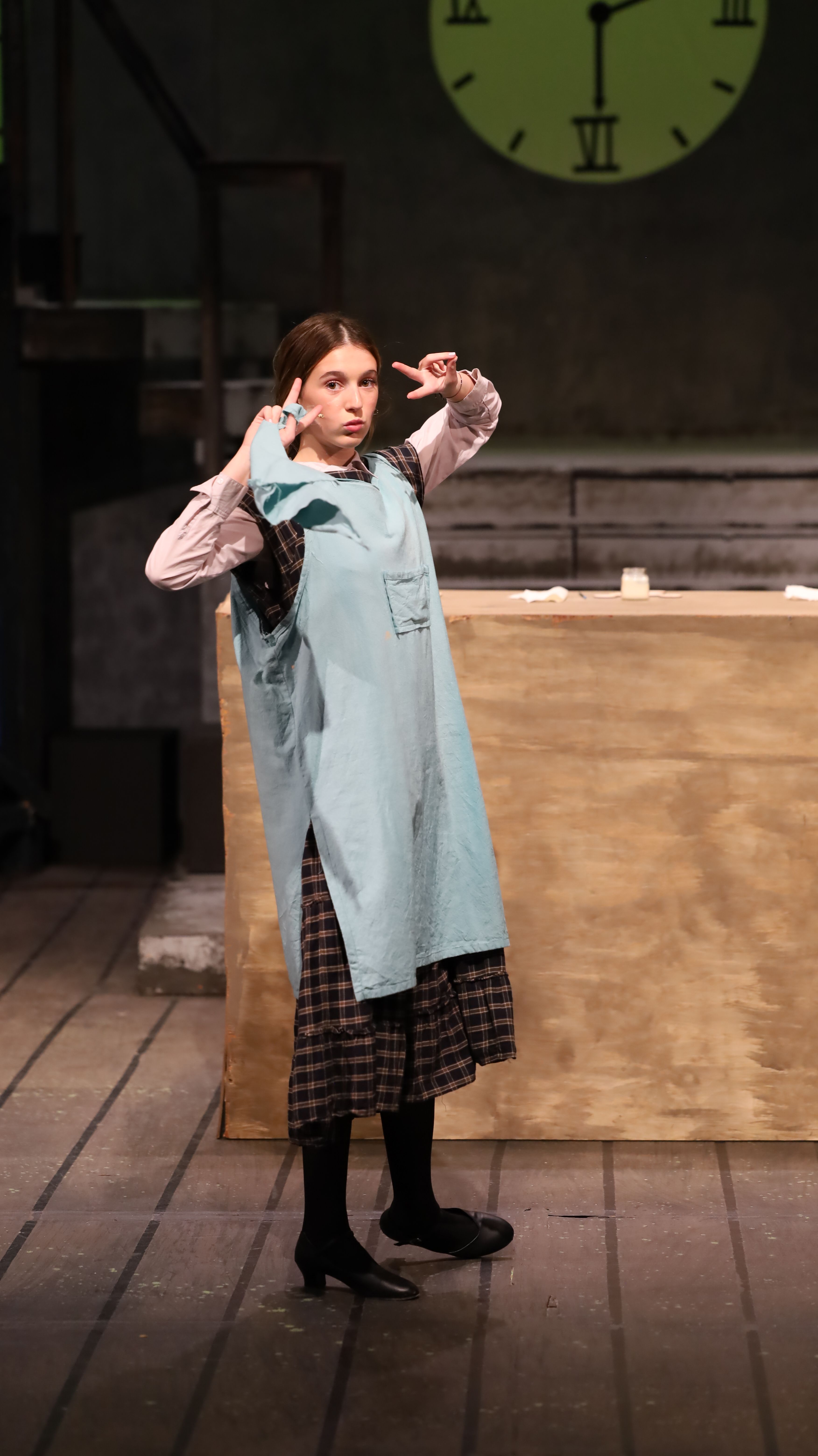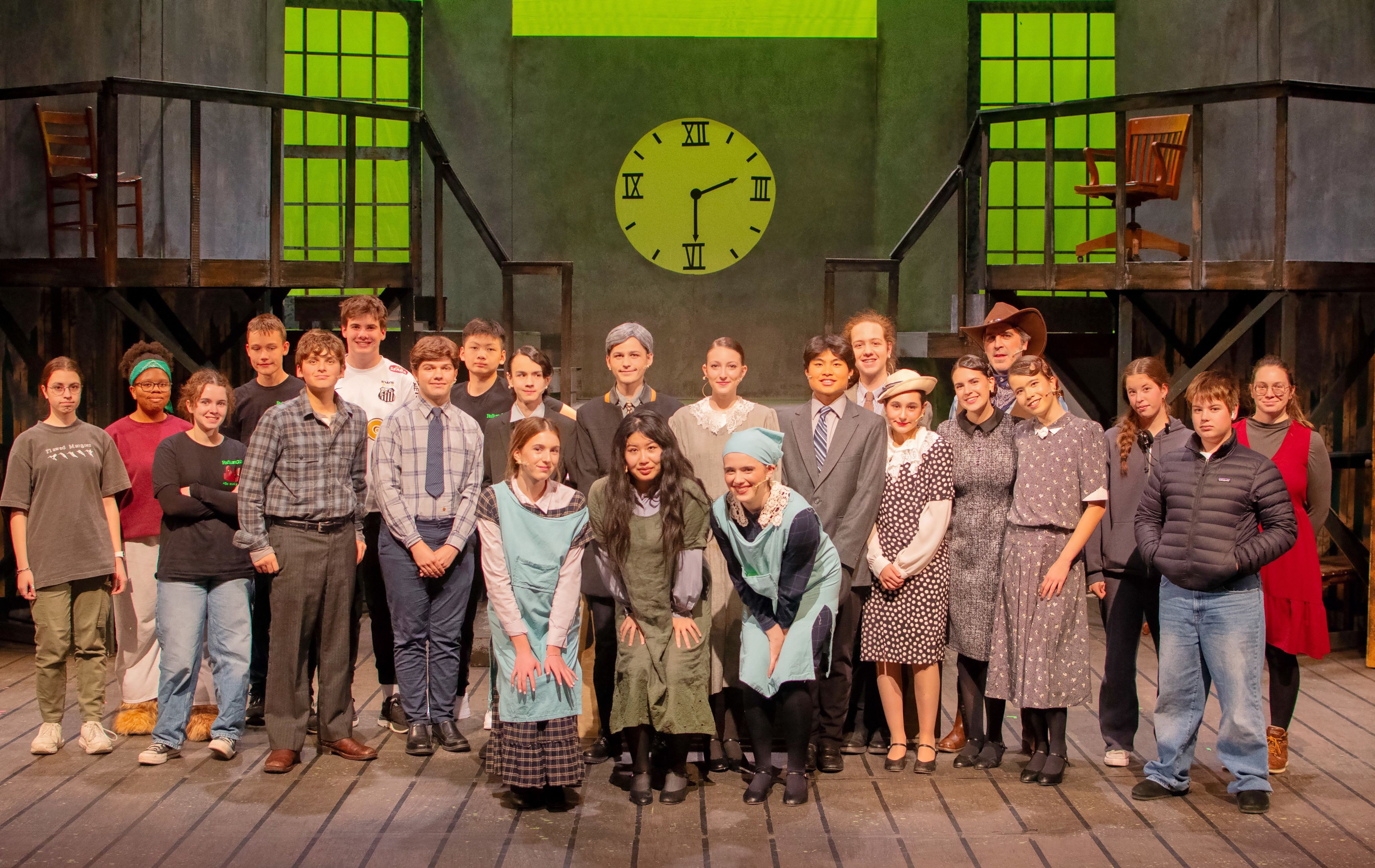 Cole Esrick '29 as Tom, Mary Wang '26 as Grace, and Izzy Miller '29 as Mrs. Fryer.
