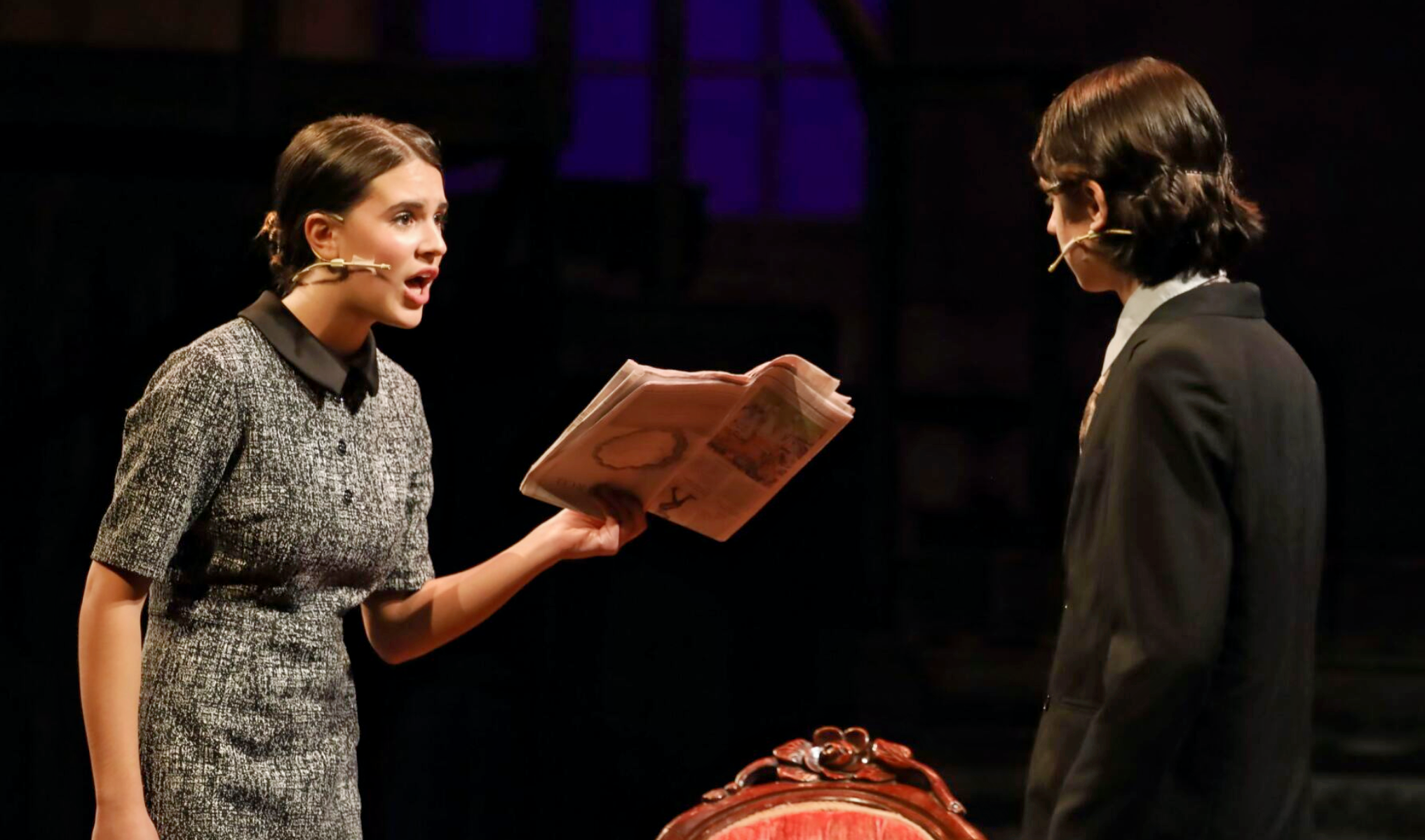 Joshua Sommers '29 as Reporter Jack Youngwood and Izzy Miller '29 as Sob Sister.