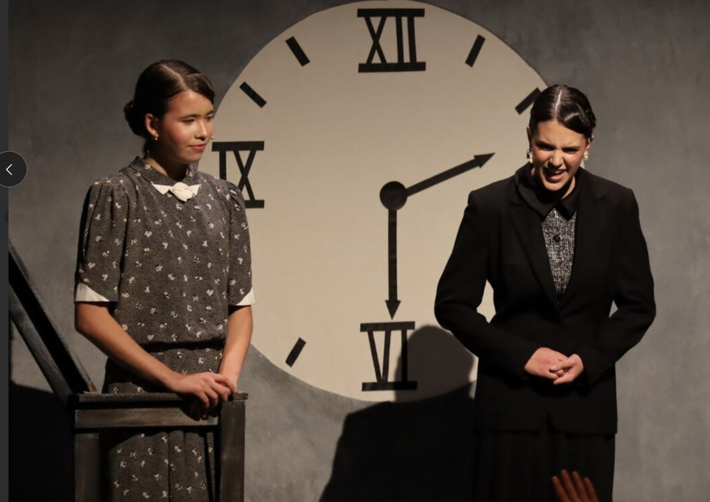 Bella Drummond '27 as Mrs. Roeder and Austin Hsiao '27 as Mr. Roeder.