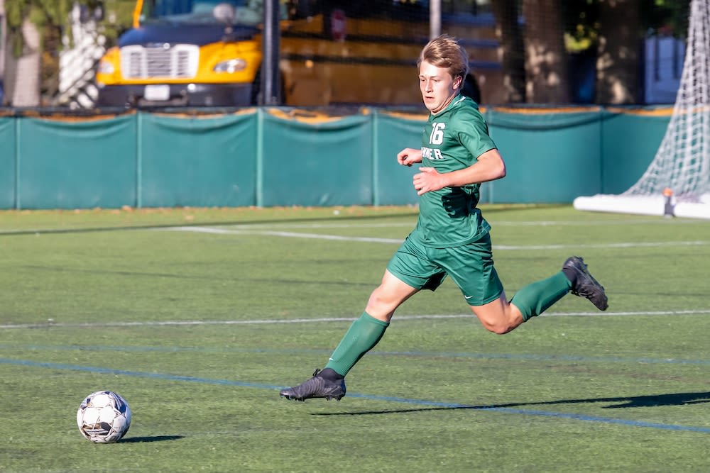 Andrew Flint plays Varsity Soccer this fall. Photo by David Barron.
