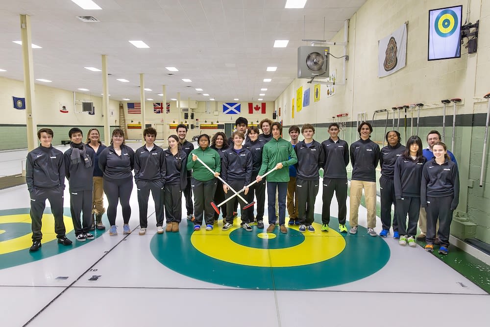 Andrew Flint (center) poses with his 2023-24 curling team. Photo by David Barron.