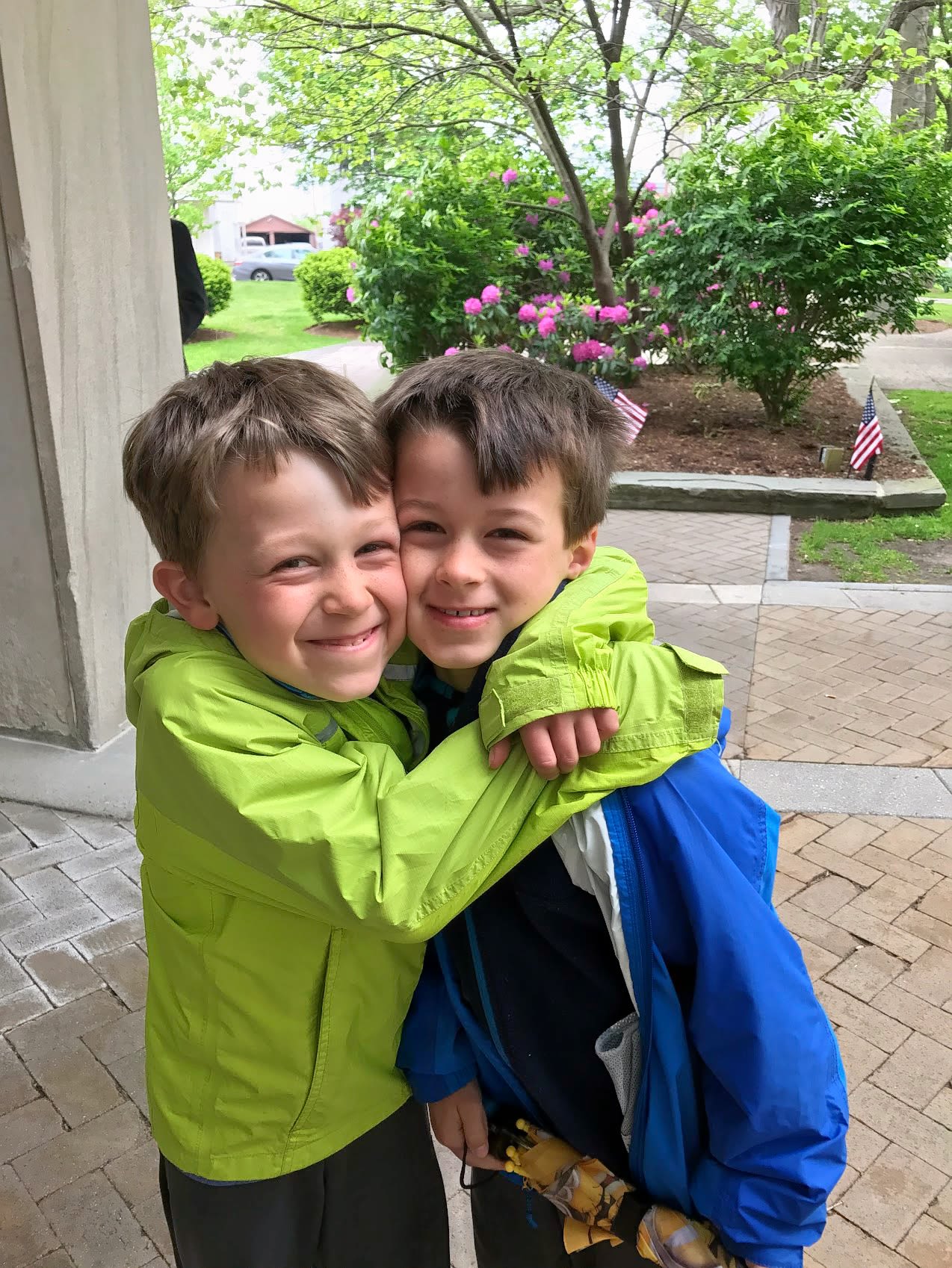 Andrew Flint (left) and his brother, Edward Flint (right) share a hug at age 7. Photo courtesy of Edward Flint.
